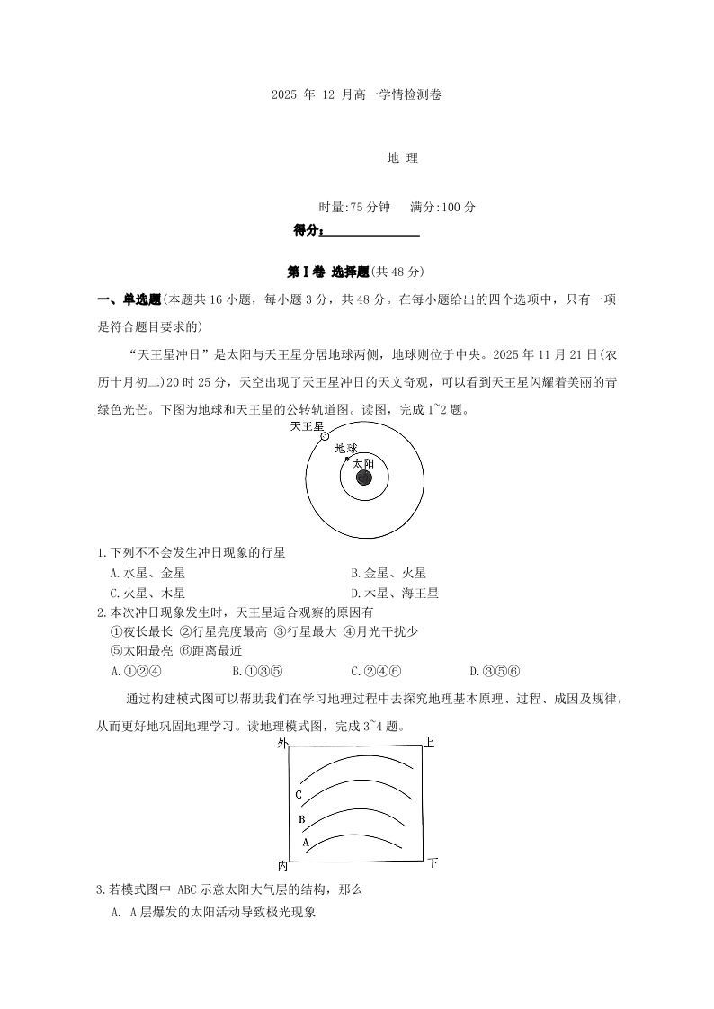 湖南省新高考教学教研联盟(长郡20校)2025年12月高一学情检测 地理.pdf