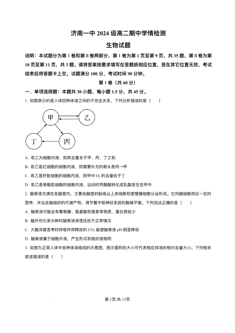 山东省济南第一中学2025-2026学年高二上学期期中学情检测 生物试题(含答案).pdf