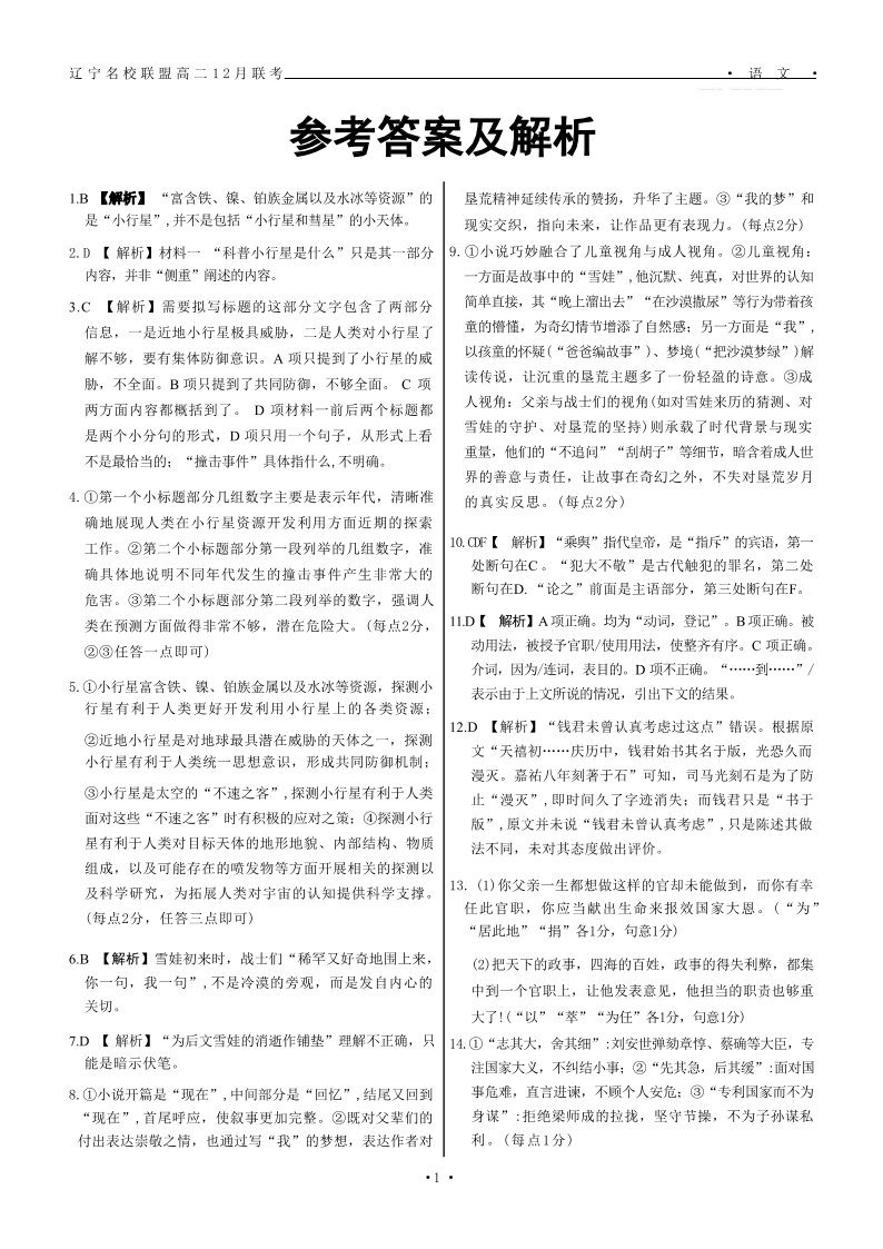 辽宁省名校联盟2025年高二12月份联合考试 语文答案.pdf