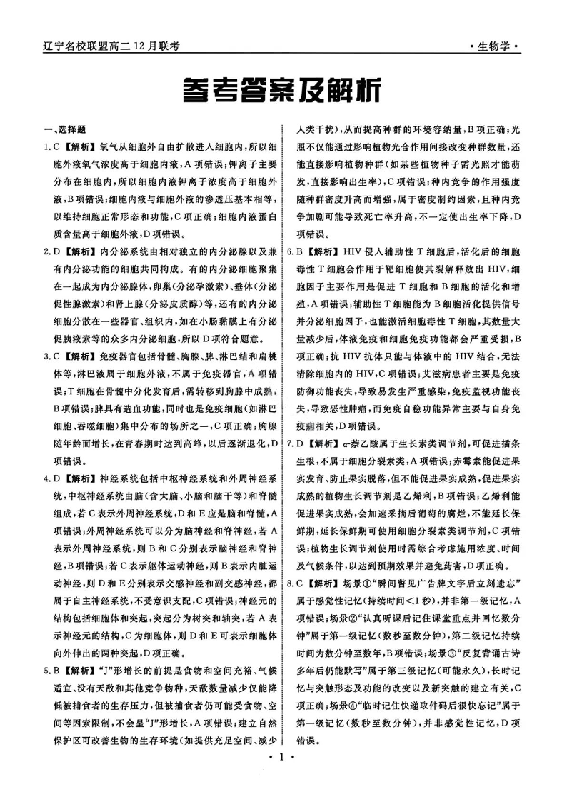 辽宁省名校联盟2025年高二12月份联合考试 生物答案.pdf