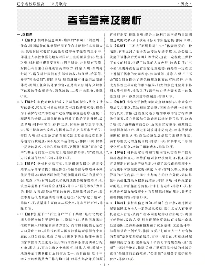 辽宁省名校联盟2025年高二12月份联合考试 历史答案.pdf