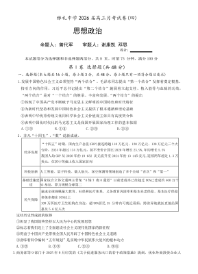 雅礼中学2026届高三月考试卷(四)政治.pdf