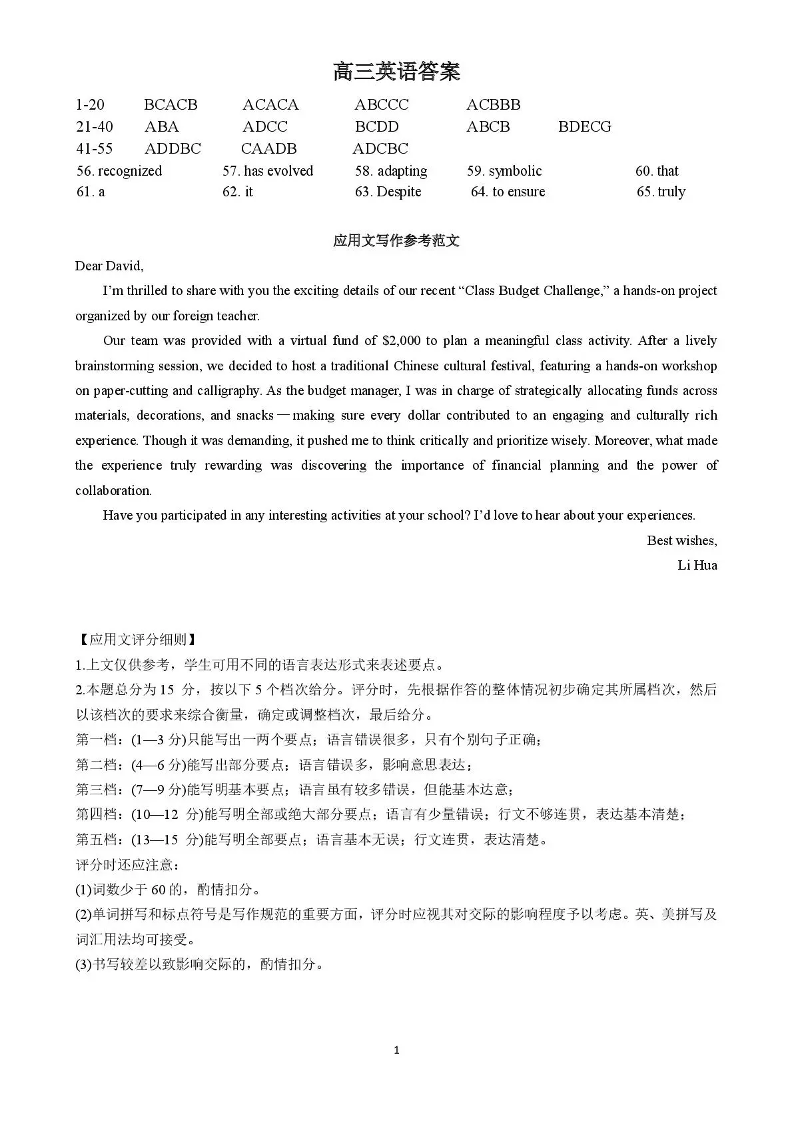 湖北省楚天协作体2025-2026学年高三上学期12月联考 英语答案.pdf