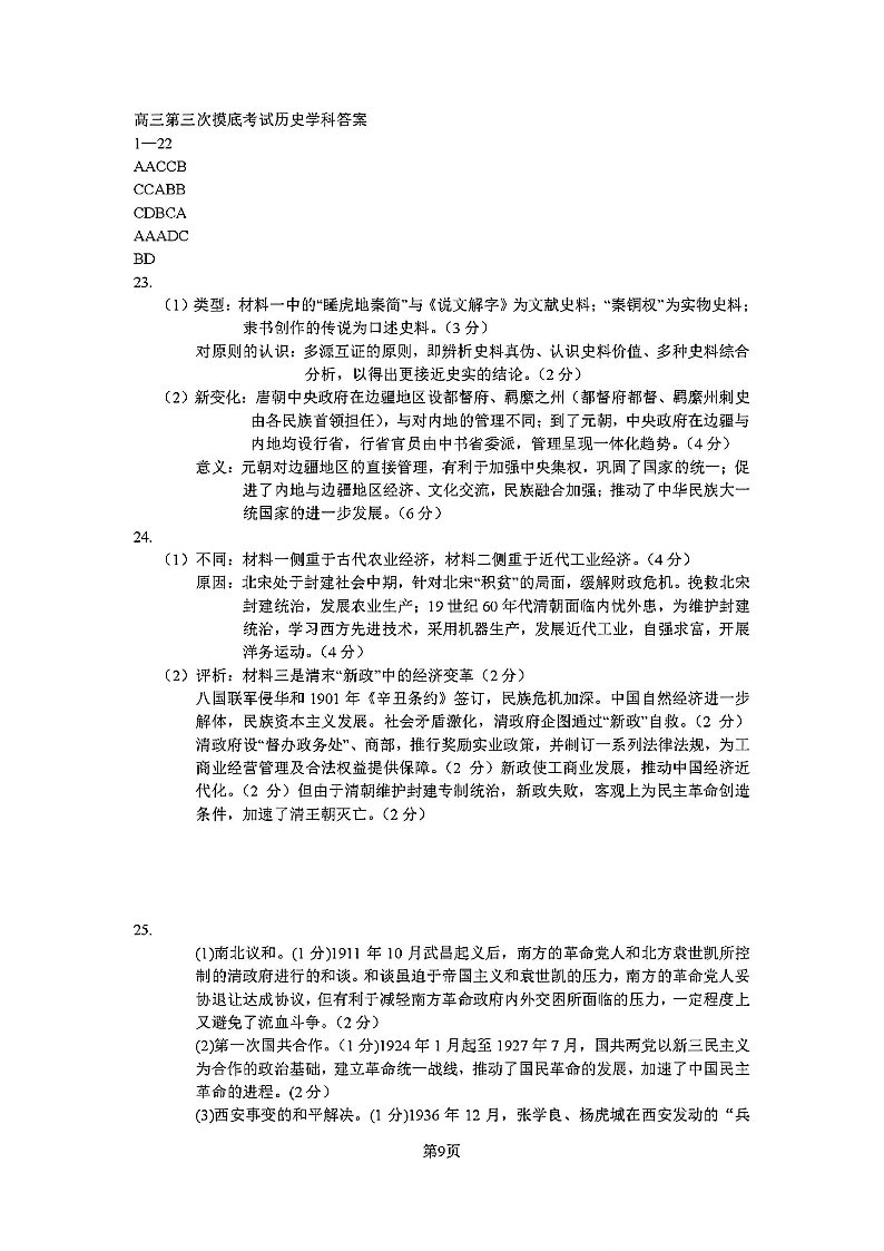 东北师范大学附属中学2025-2026学年高三上学期第三次摸底考试 历史答案.pdf