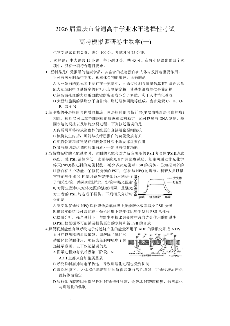 重庆市2026届普通高中学业水平选择性考试高考模拟调研卷(一)生物.docx