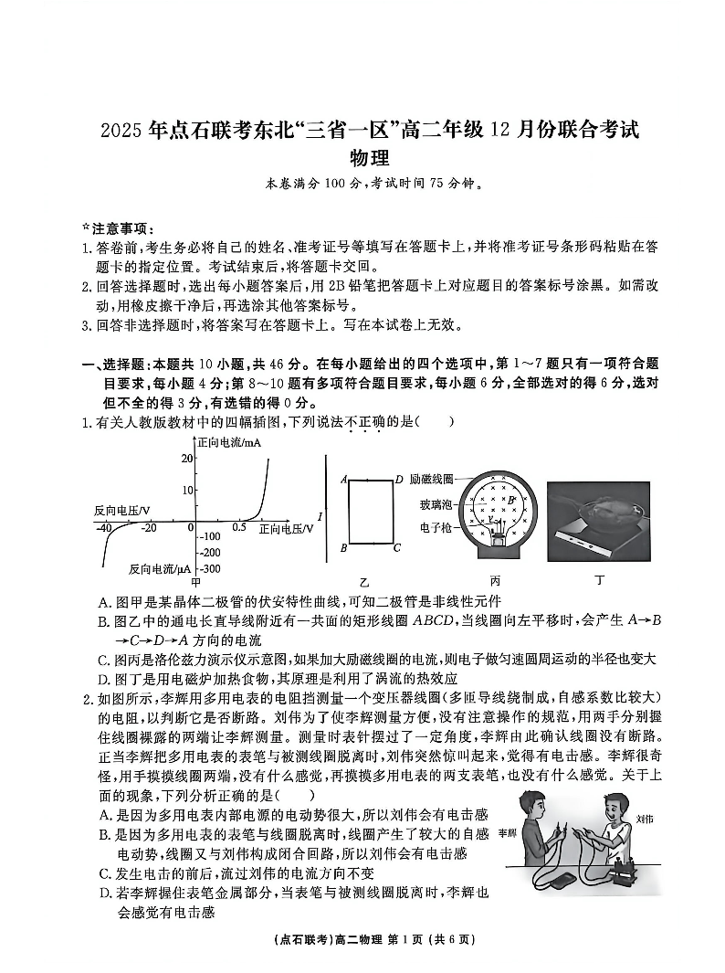 2025年点石联考东北“三省一区”高二年级12月份联合考试 物理试题(含答案).pdf