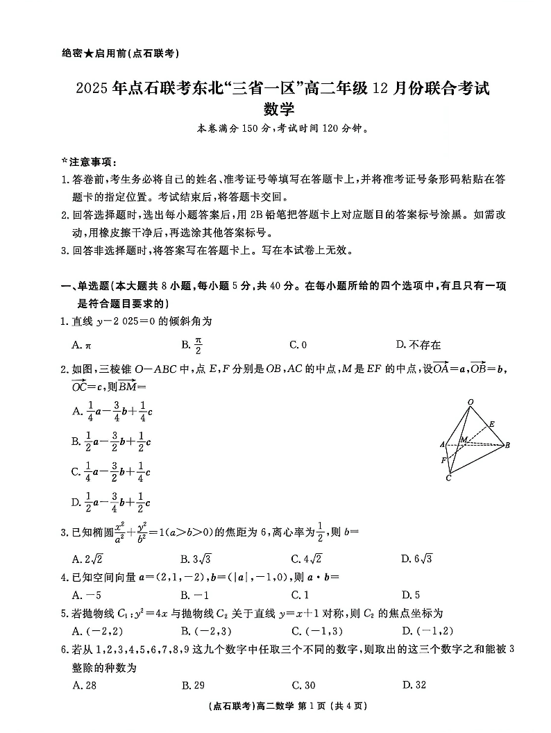 2025年点石联考东北“三省一区”高二年级12月份联合考试 数学试题(含答案).pdf