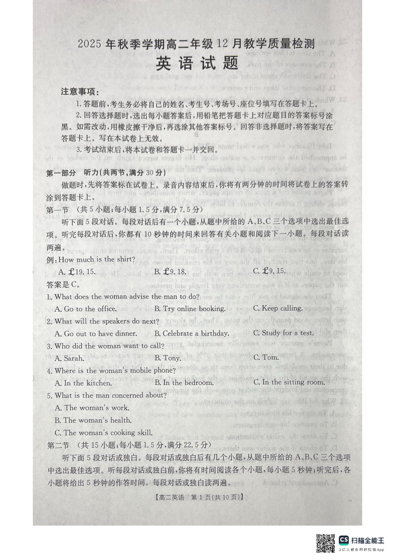 桂林十市二县中学2025年秋季学期高二年级12月教学质量检测 英语.pdf
