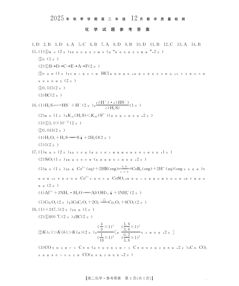 桂林十市二县中学2025年秋季学期高二年级12月教学质量检测 化学答案.pdf