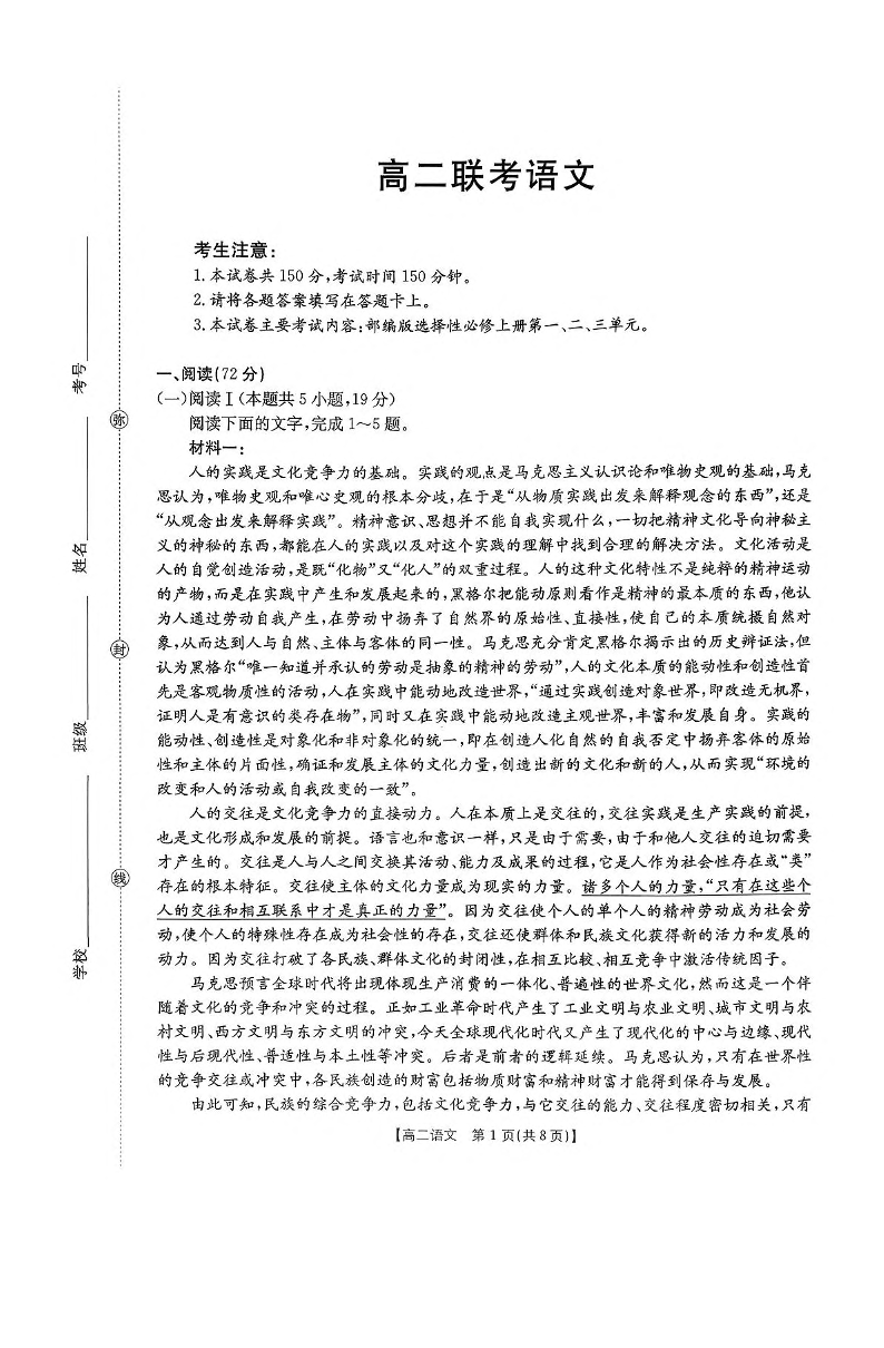 贵州省遵义市区县一中2025-2026学年高二上学期期中联考 语文试卷(含答案).pdf