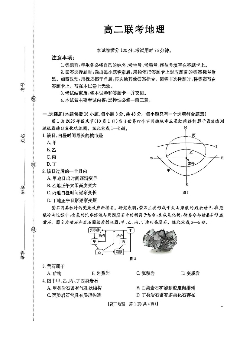 贵州省遵义市区县一中2025-2026学年高二上学期期中联考 地理试卷(含答案).pdf