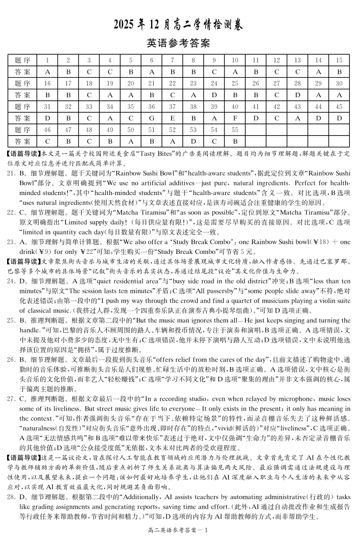 湖南省新高考教学教研联盟(长郡20校)2025年12月高二学情检测 英语答案.pdf