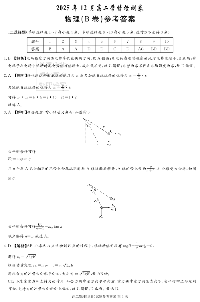 湖南省新高考教学教研联盟(长郡20校)2025年12月高二学情检测 物理(B卷)答案.pdf