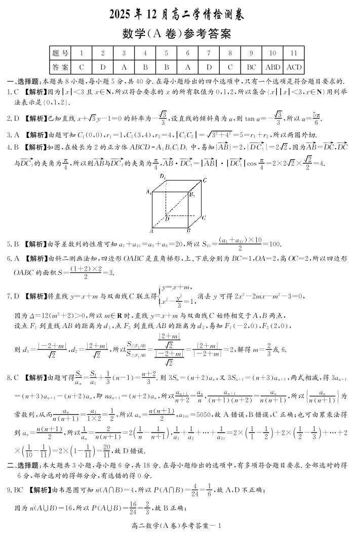 湖南省新高考教学教研联盟(长郡20校)2025年12月高二学情检测 数学(A卷)答案.pdf