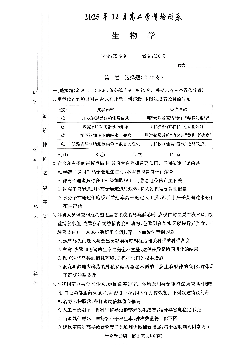 湖南省新高考教学教研联盟(长郡20校)2025年12月高二学情检测 生物.pdf