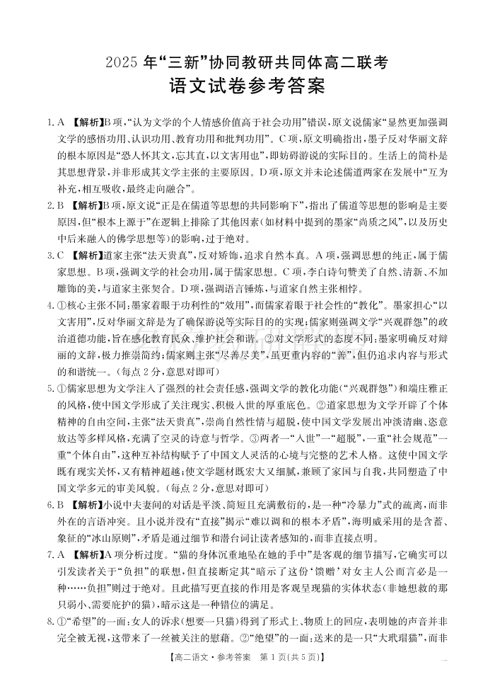江西省2025年“三新”协同教研共同体高二联考 语文答案.pdf
