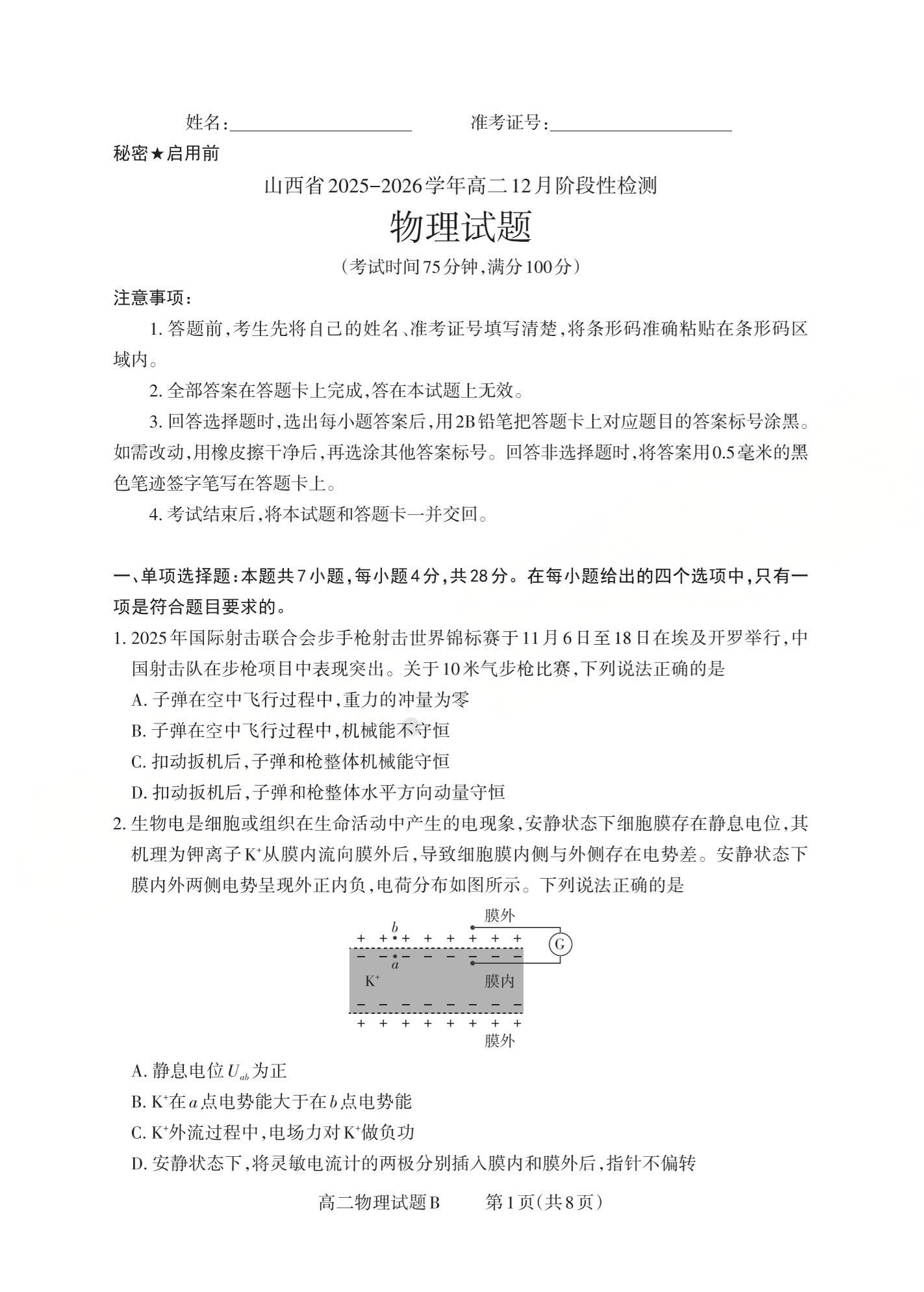 山西省三重教育2025-2026学年高二12月阶段性检测 物理(B卷).pdf