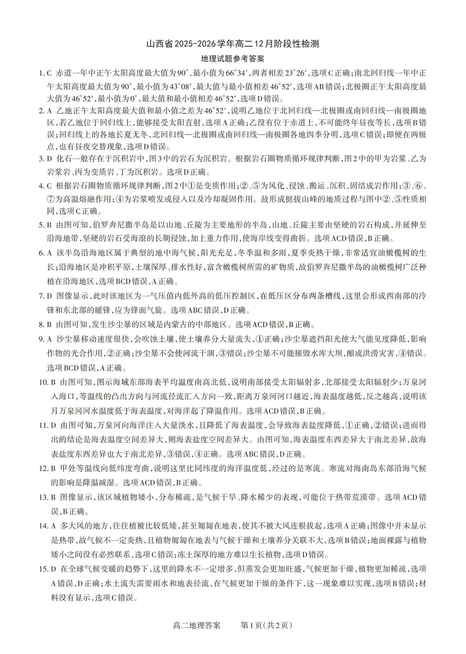 山西省三重教育2025-2026学年高二12月阶段性检测 地理答案.pdf