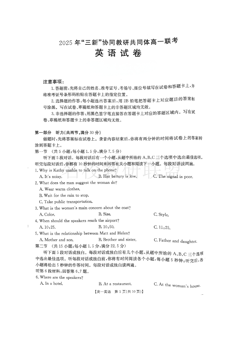 江西省2025年“三新”协同教研共同体高一联考 英语.pdf