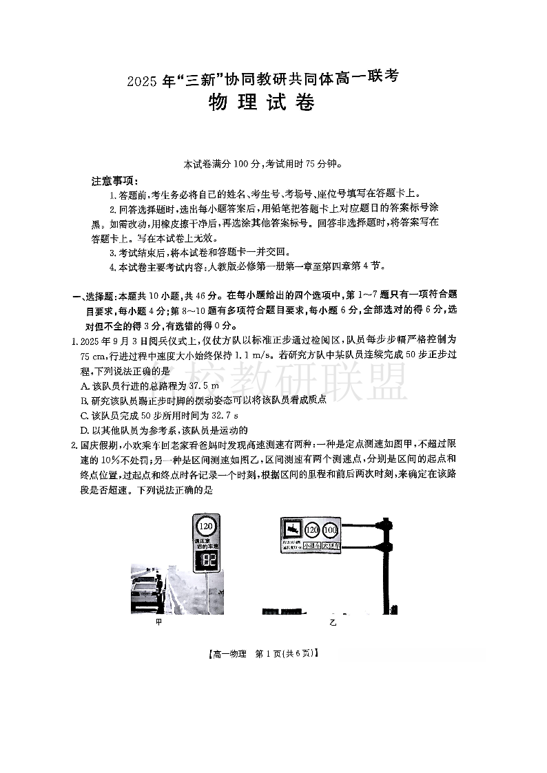 江西省2025年“三新”协同教研共同体高一联考 物理.pdf