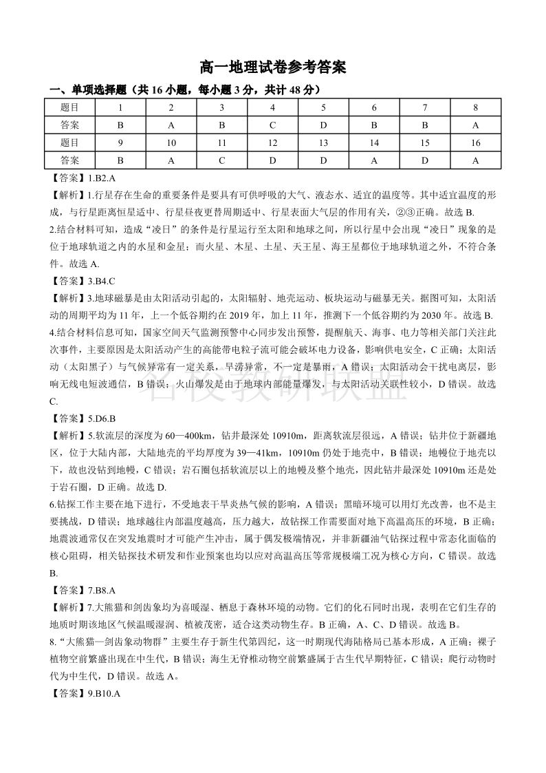 江西省2025年“三新”协同教研共同体高一联考 地理答案.pdf