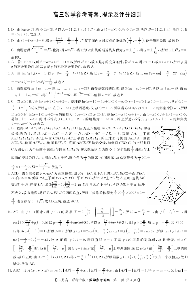 九师联盟2026届高三上学期12月联考 数学答案.pdf