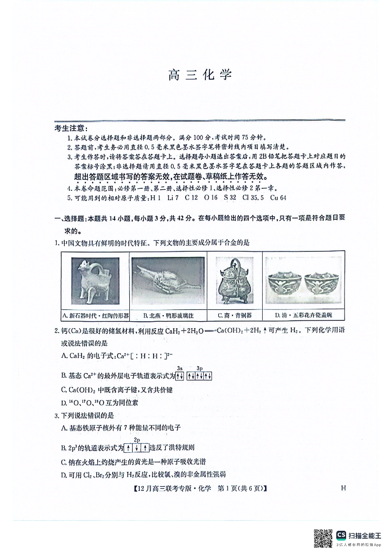 九师联盟2026届高三上学期12月联考 化学.pdf