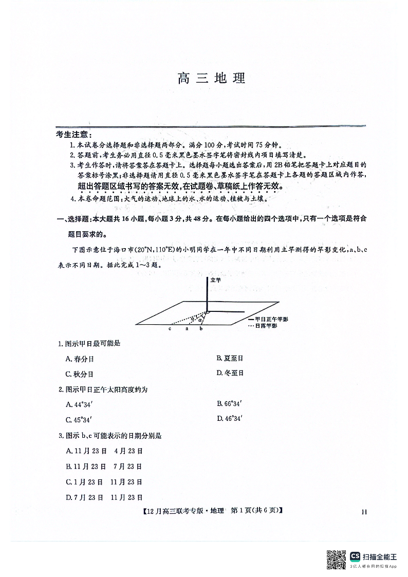 九师联盟2026届高三上学期12月联考 地理.pdf