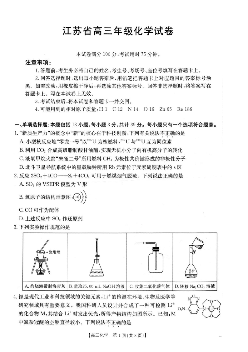 江苏省百校2026届高三年级上学期12月联考 化学.pdf
