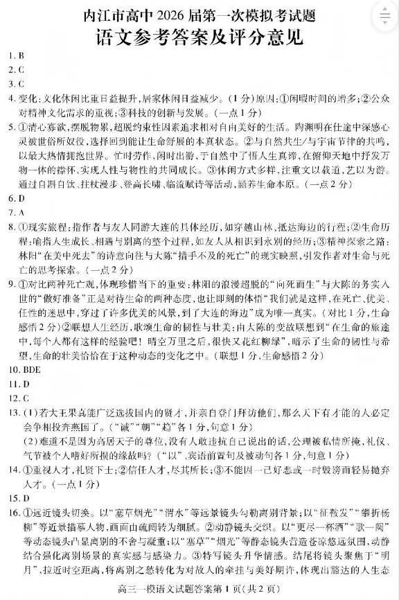 内江市高中2026届第一次模拟考试题 语文答案.pdf