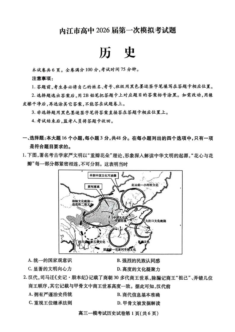 内江市高中2026届第一次模拟考试题 历史.pdf