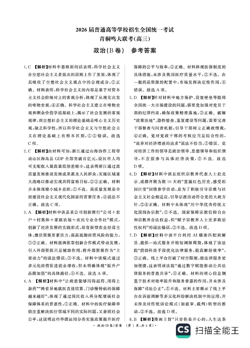 河南省青桐鸣联考2025-2026学年高三上学期12月月考 政治(B卷)答案.pdf