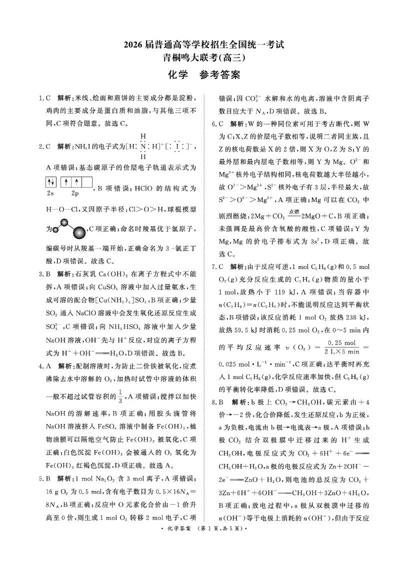 河南省青桐鸣联考2025-2026学年高三上学期12月月考 化学答案.pdf