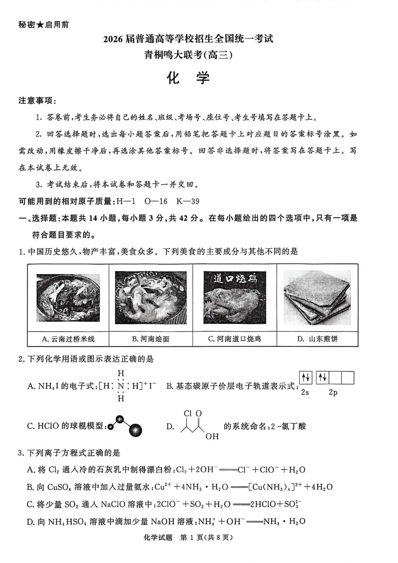 河南省青桐鸣联考2025-2026学年高三上学期12月月考 化学.pdf