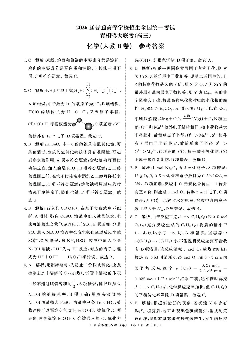 河南省青桐鸣联考2025-2026学年高三上学期12月月考 化学(人教B卷)答案.pdf