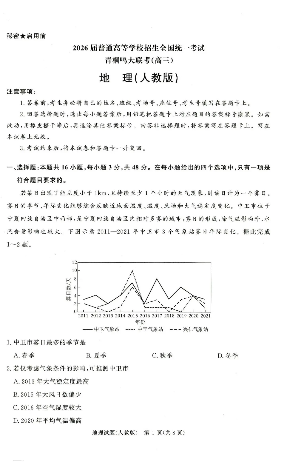 河南省青桐鸣联考2025-2026学年高三上学期12月月考 地理(人教版).pdf