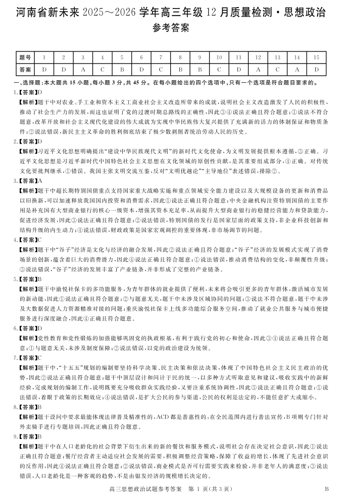河南省新未来2025-2026学年高三年级12月质量检测 政治答案.pdf
