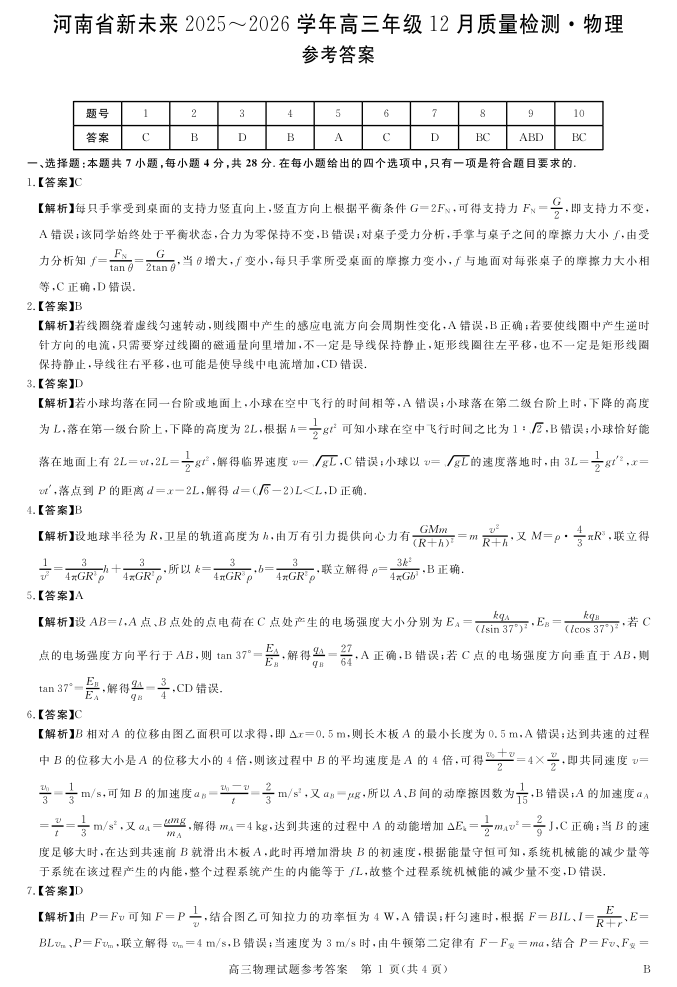 河南省新未来2025-2026学年高三年级12月质量检测 物理答案.pdf