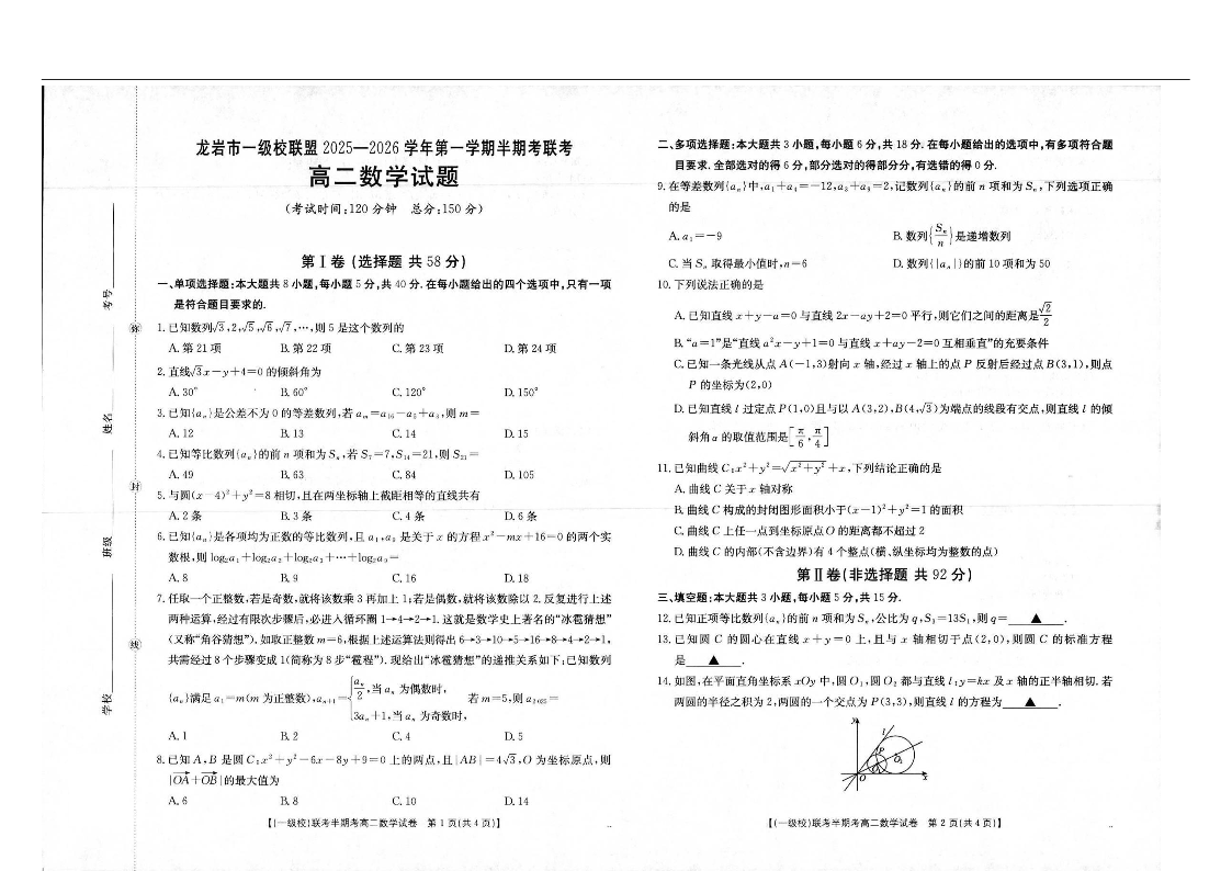 福建省龙岩市一级校盟2025-2026学年高二上学期期中联考 数学试题(含答案).pdf