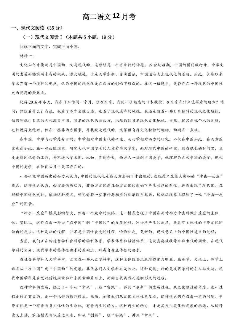 吉林省梅河口市第五中学2025-2026学年高二上学期12月月考 语文试题(含答案).docx