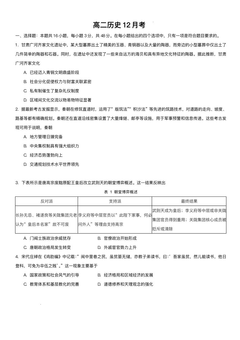 吉林省梅河口市第五中学2025-2026学年高二上学期12月月考 历史试题(含答案).pdf