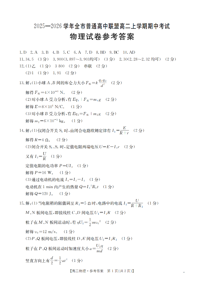 内蒙古赤峰市松山区全市普通高中联盟2025-2026学年高二上学期期中考试 物理答案.pdf
