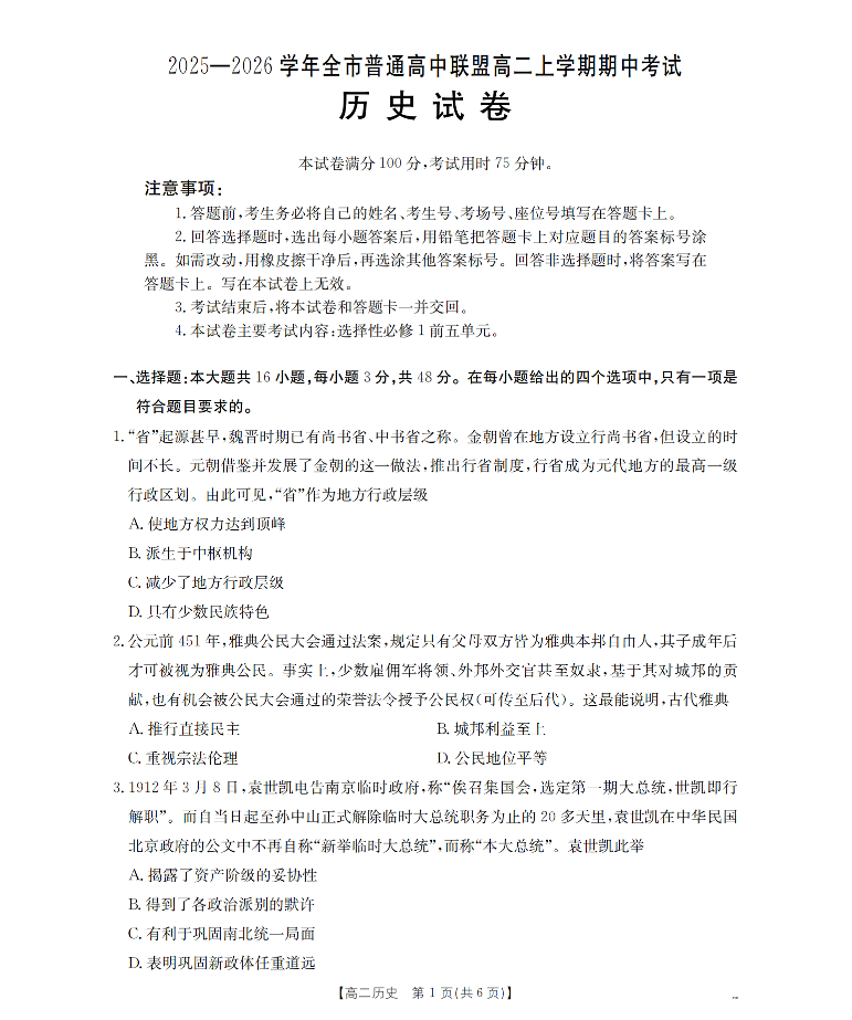 内蒙古赤峰市松山区全市普通高中联盟2025-2026学年高二上学期期中考试 历史.pdf