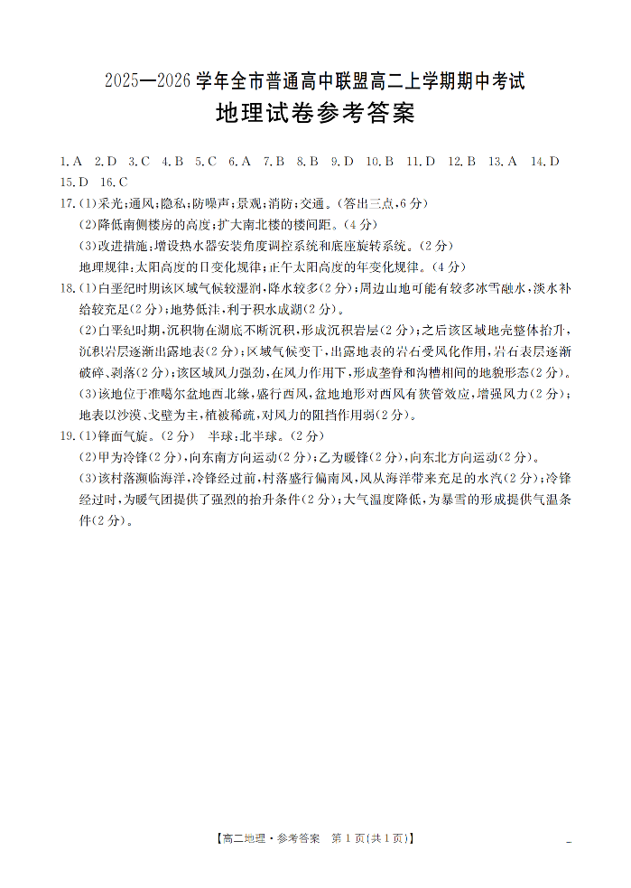 内蒙古赤峰市松山区全市普通高中联盟2025-2026学年高二上学期期中考试 地理答案.pdf