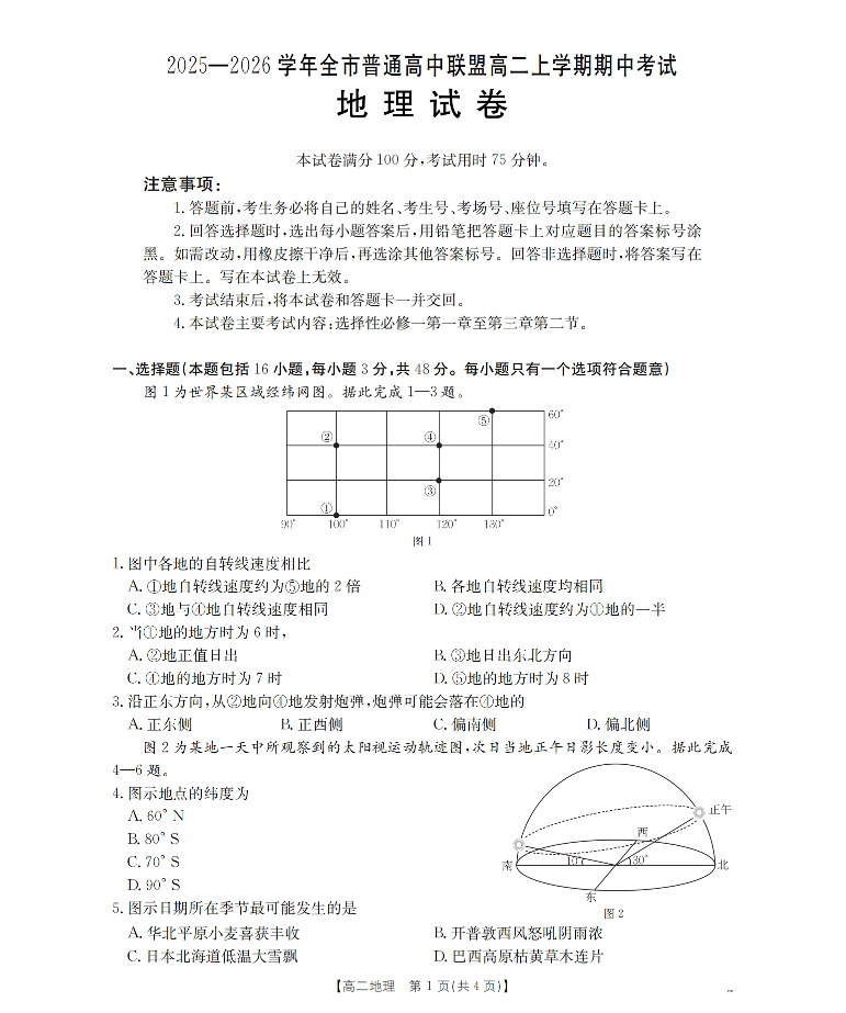 内蒙古赤峰市松山区全市普通高中联盟2025-2026学年高二上学期期中考试 地理.pdf