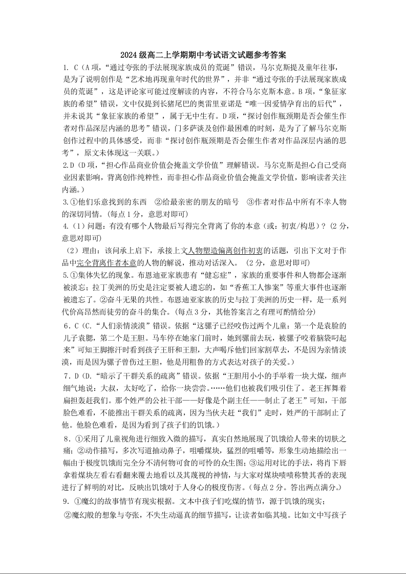 山东省济宁市兖州区2025-2026学年高二上学期期中质量检测 语文答案.docx
