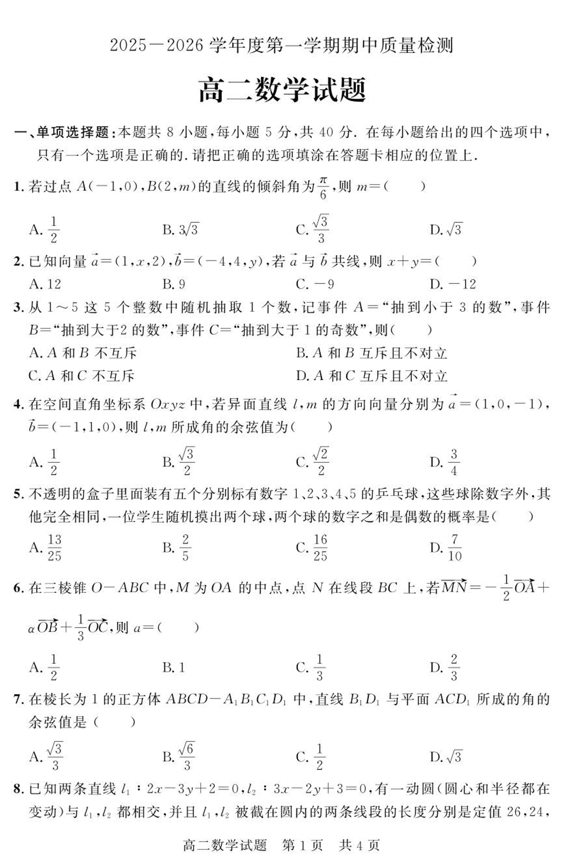 山东省济宁市兖州区2025-2026学年高二上学期期中质量检测 数学.pdf