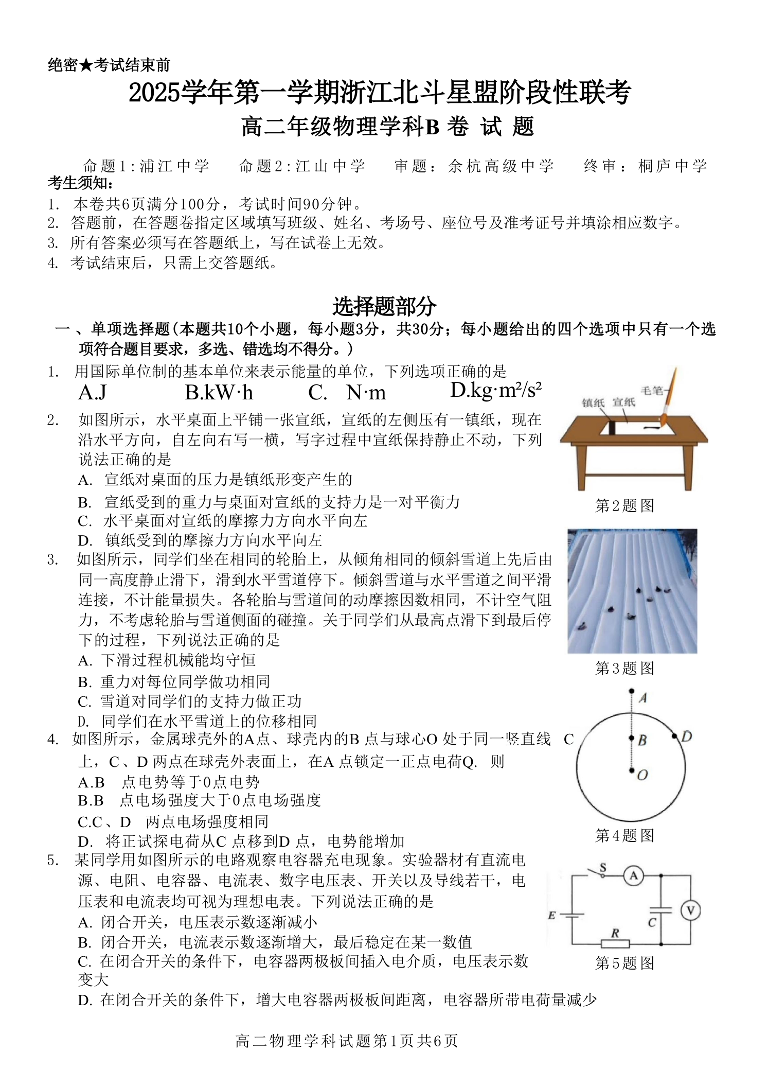 浙江省2025学年第一学期浙江北斗星盟高二年级阶段性联考 物理(B卷).docx
