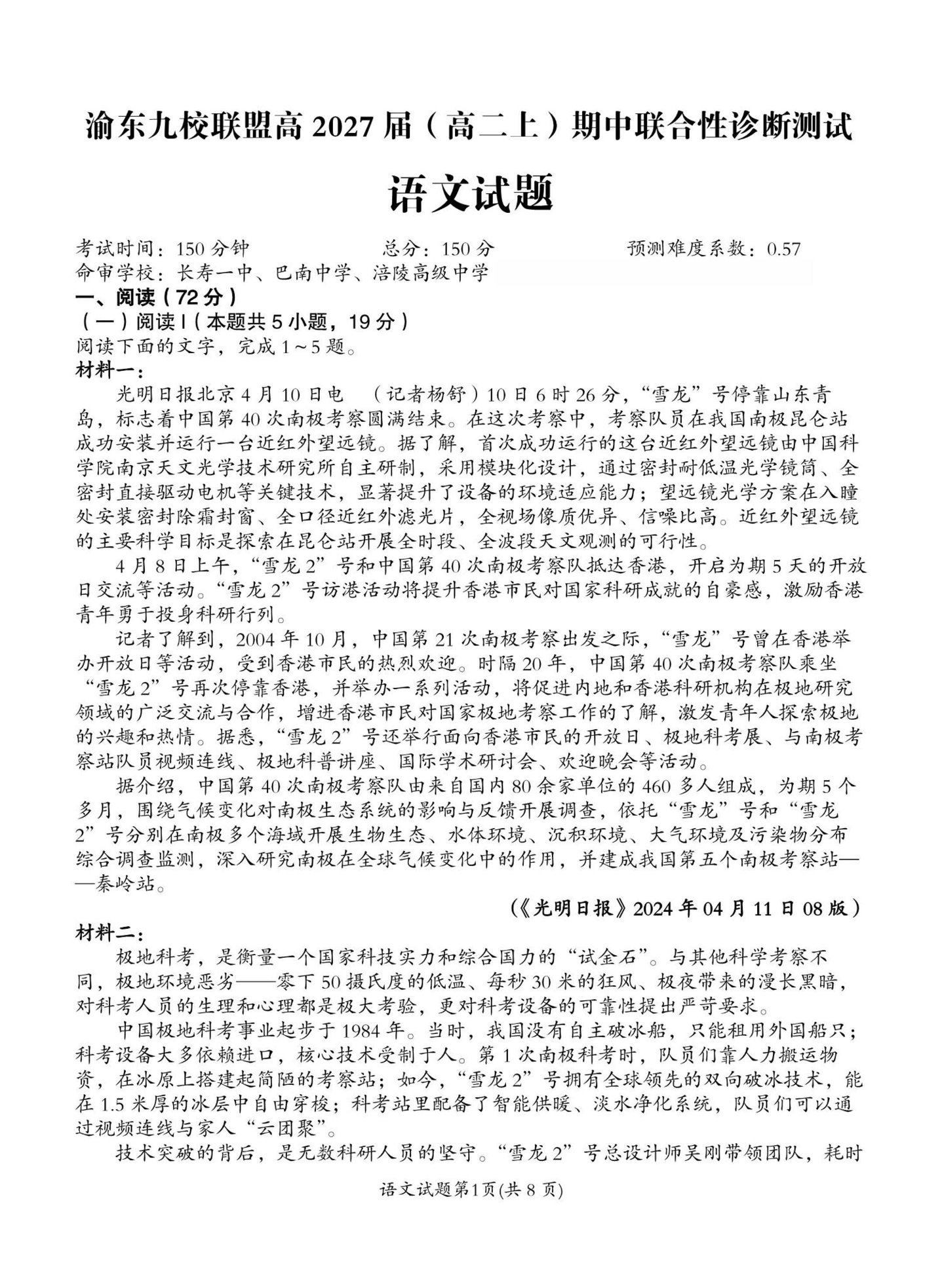 渝东九校联盟高2027届(高二上)期中联合性诊断测试 语文试题(含答案).pdf