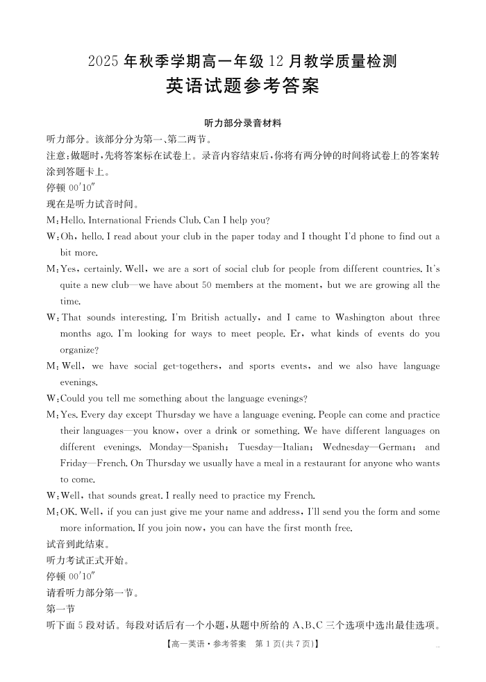 桂林市、贵港市2025年秋季学期高一年级12月教学质量检测 英语答案.pdf